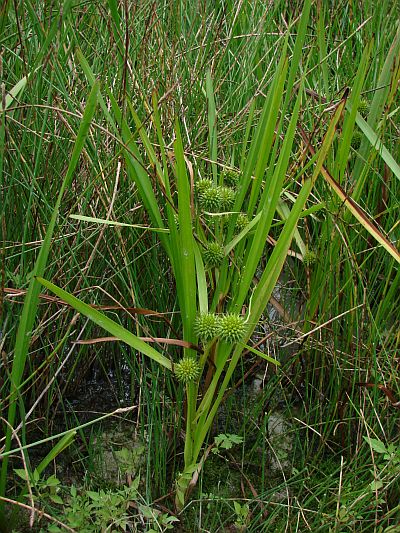 ![]() | Sparganium erectum - zevar vzpřímený Čeleď: zevarovité (Sparganiaceae) Bylina vytrvalá, vodní i bažinatá, 30-150 cm vysoká. V zemi má dužnaté výběžky. Lodyha silná, přímá, nad polovinou větvená, oblá listnatá. Listy tuhé, dole trojboké, mečovité, delší, špičaté, na hřbetní straně s vystouplou … |
