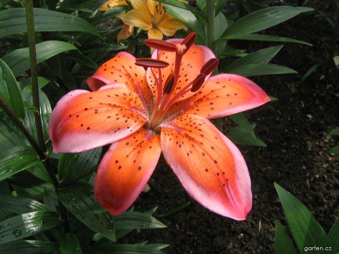 Barva květů: oranžová, Lilie Electric má hvězdicovité, oranžové květy s výrazným růžovým okrajem a s nazpět prohnutými korunními plátky. Lodyha dorůstá do výšky 65 cm. Rostliny z rodu Lilium : 104. Lilium x hybridum 'Doubleen' (lilie ), Angl: Lily , Něm: Lilie 105. Lilium x hybridum 'Easy Dance' (lilie ), Angl: Lily , Něm: Lilie 106. Lilium x hybridum 'Easy Life' (lilie ), Angl: Lily , Něm: Lilie 107. Lilium x hybridum 'Easy Waltz' (lilie ), Angl: Lily , Něm: Lilie 108. Lilium x hybridum 'Eldoret' (lilie ), Angl: Lily , Něm: Lilie 109. Lilium x hybridum 'Electric' (lilie ), Angl: Lily , Něm: Lilie 110. Lilium x hybridum 'Elegant Crown' (lilie ), Angl: Lily , Něm: Lilie 111. Lilium x hybridum 'Elena' (lilie ), Angl: Lily , Něm: Lilie 112. Lilium x hybridum 'Elise' (lilie ), Angl: Lily , Něm: Lilie 113. Lilium x hybridum 'Elodie' (lilie ), Angl: Lily , Něm: Lilie 114. Lilium x hybridum 'Eltanin' (lilie ), Angl: Lily , Něm: Lilie 115. Lilium x hybridum 'Erfordia' (lilie ), Angl: Lily , Něm: Lilie 116. Lilium x hybridum 'Esta Bonita' (lilie ), Angl: Lily , Něm: Lilie 117. Lilium x hybridum 'Eurydike' (lilie ), Angl: Lily , Něm: Lilie 118. Lilium x hybridum 'Evina' (lilie ), Angl: Lily , Něm: Lilie 119. Lilium x hybridum 'Exotic Sun' (lilie ), Angl: Lily , Něm: Lilie 120. Lilium x hybridum 'Extravaganza' (lilie ), Angl: Lily , Něm: Lilie 121. Lilium x hybridum 'Eyeliner' (lilie ), Angl: Lily , Něm: Lilie 122. Lilium x hybridum 'Fait' (lilie ), Angl: Lily , Něm: Lilie 123. Lilium x hybridum 'Fantagiro' (lilie ), Angl: Lily , Něm: Lilie Fórum: Lilium x hybridum Electric , lilie , Lilium , lilie