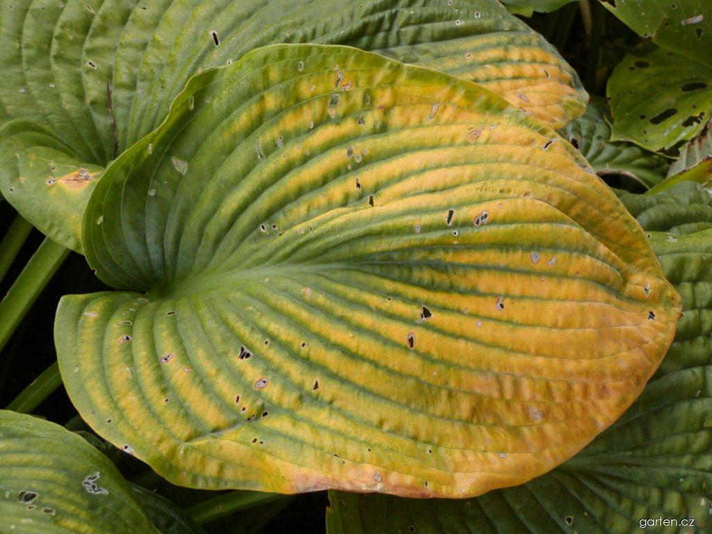 Hosta sieboldiana        'Elegans'  bohyška, funkie listy podzim