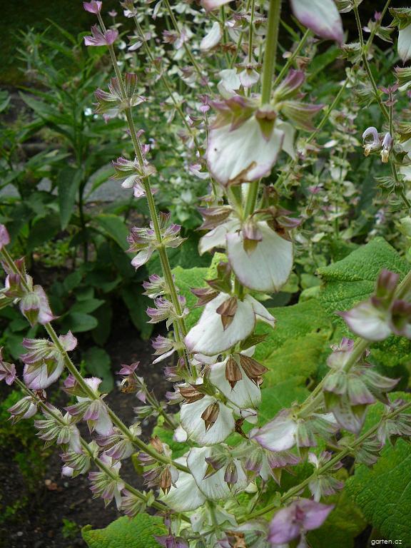 Šalvěj muškátová - Salvia sclareaSynonyma: Salvia sclarea var. turkestaniana Čeleď: Lamiaceae - hluchavkovité Barva květů: bílá, Doba kvetení: červen, červenec, Typ květů: květy ostatní. | |