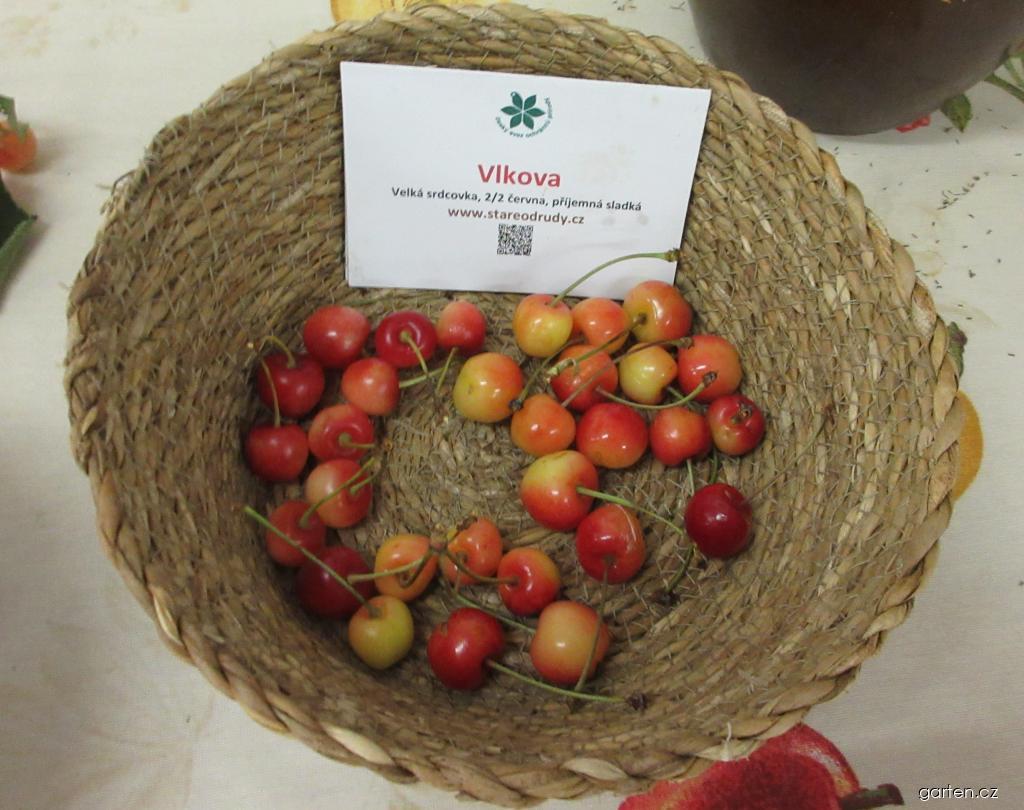 Třešeň ptačí 'Vlkova' - Prunus aviumPrunus avium 'Vlkova'; Další názvy: 'Vlkova obrovská', 'Vlks Riesenkirsche' Čeleď: Rosaceae - růžovité Skupina: srdcovky Plody jsou velké, 10 plodů váží okolo 80 g. Tvar mají spíše kulovitý, ze stran zploštělý. Plody nemají vždy jednotný tvar. Srůstová jizva na jedné straně je dobře znatelná. Slupka je lesklá a velmi jemná.… | |||
