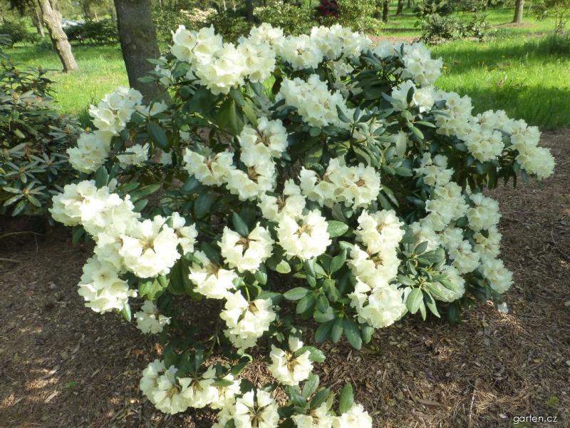 Pěnišník jakušimský 'Frühlingsgold' - Rhododendron degronianum subsp. yakushimanumRhododendron degronianum subsp. yakushimanum 'Frühlingsgold'; Synonyma: Rhododendron x yakushimanum, Rhododendron yakushimanumČeleď: Ericaceae - vřesovcovité Barva květů: bílá, (bíložluté květy) Doba kvetení: květen, červen, Místo: Dendrologická zahrada Průhonice | |