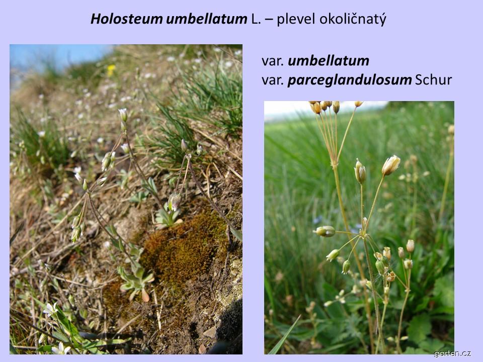 Plevel okoličnatý žláznatý - Holosteum umbellatum var. parceglandulosumSynonyma: Holosteum umbellatum subsp. viscosissimumČeleď: Caryophyllaceae - hvozdíkovité Barva květů: bílá, Doba kvetení: březen, duben, květen, Typ květů: počet okvětních lístků 5, Holosteum umbellatum var parceglandulosum - plevel okoličnatý žláznatý Popis: jednoletá bylina, 4–32(–39) cm vysoká, sivozelená lodyha - vystoupavá… | |||