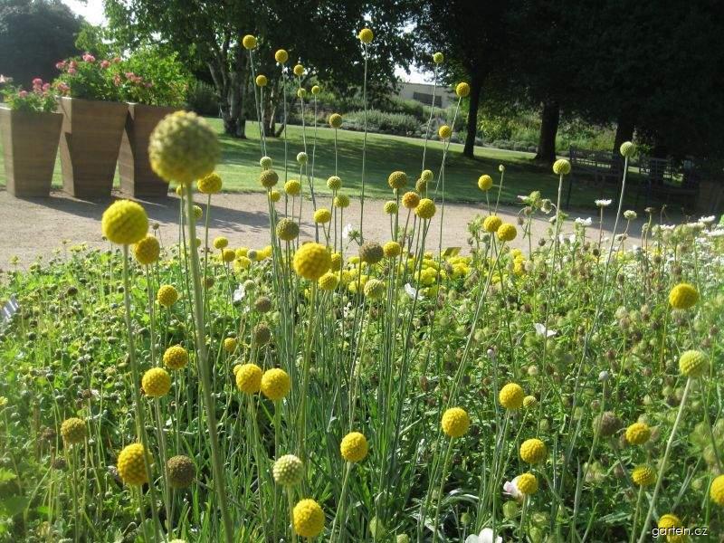 Kraspedie kulovitá - Craspedia globosaCraspedia globosa 'Trommelstock'; Kraspedie kulovitá 'Trommelstock' má nápadná složená kulovitá květenství na poměrně dlouhých stoncích. Místo: Botanická zahrada Praha Troja | |