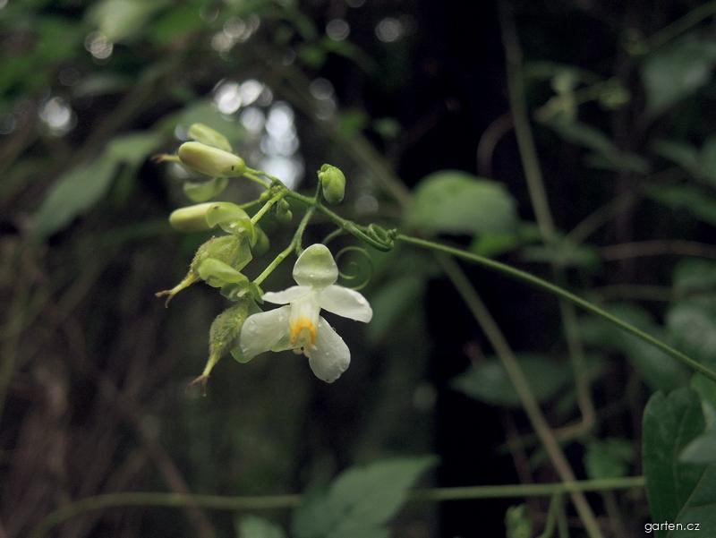 Srdcovnice - Cardiospermum grandiflorumČeleď: Sapindaceae - mýdelníkovité Barva květů: bílá, Květy jsou malé, mírně voňavé, s krémově bílými lístky. Plodem je tobolka, která po zrání praskne na tři části. | |||