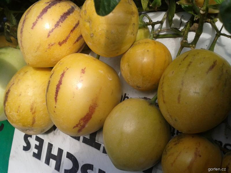 Lilek pepino - Solanum muricatumSolanum muricatum 'Pepíno Gold'; Čeleď: Solanaceae - lilkovité 'Pepíno Gold' v podobě srdce |